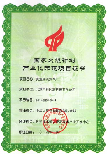 國(guó)家火炬計(jì)劃產(chǎn)業(yè)化示范項(xiàng)目證書